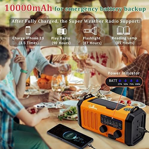 • HOME & OUTDOOR NECESSARY: The portable emergency weather radio for home outdoor survival is IPX4 waterproof and very compact for outdoor usage: weight 1LB & dimension is 6.2*3.1*2.3inch. Upgrade your emergency bag with Gustermmy best portable solar hand crank weather radio and phone charger, you won’t regret having it!