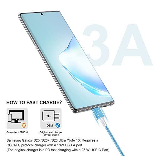 - USB C Charger Perfect Compatibility: We provide this (Blue 3ft/Green 3ft/Purple 6ft/Pink 6ft/White 10ft) 5-Pack Nylon Braided USB Type-C Cable . Compatible with all USB C devices, charger for Samsung Galaxy S22/S20/S20Plus/S20Ultra/S10/S10e/S9/S8, Note 20 10 9 8 Plus/S8+, LG G6,G5,V30,V20, LG Nexus 5X , Lumia 950, Lumia 950XL,Huawei P50 40 30 20/Mate40 Pro/nova 8 Pro and other usb type c cable device.